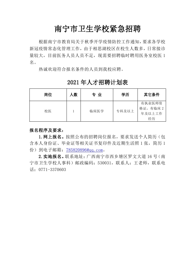南宁市卫生学校紧急招聘榜