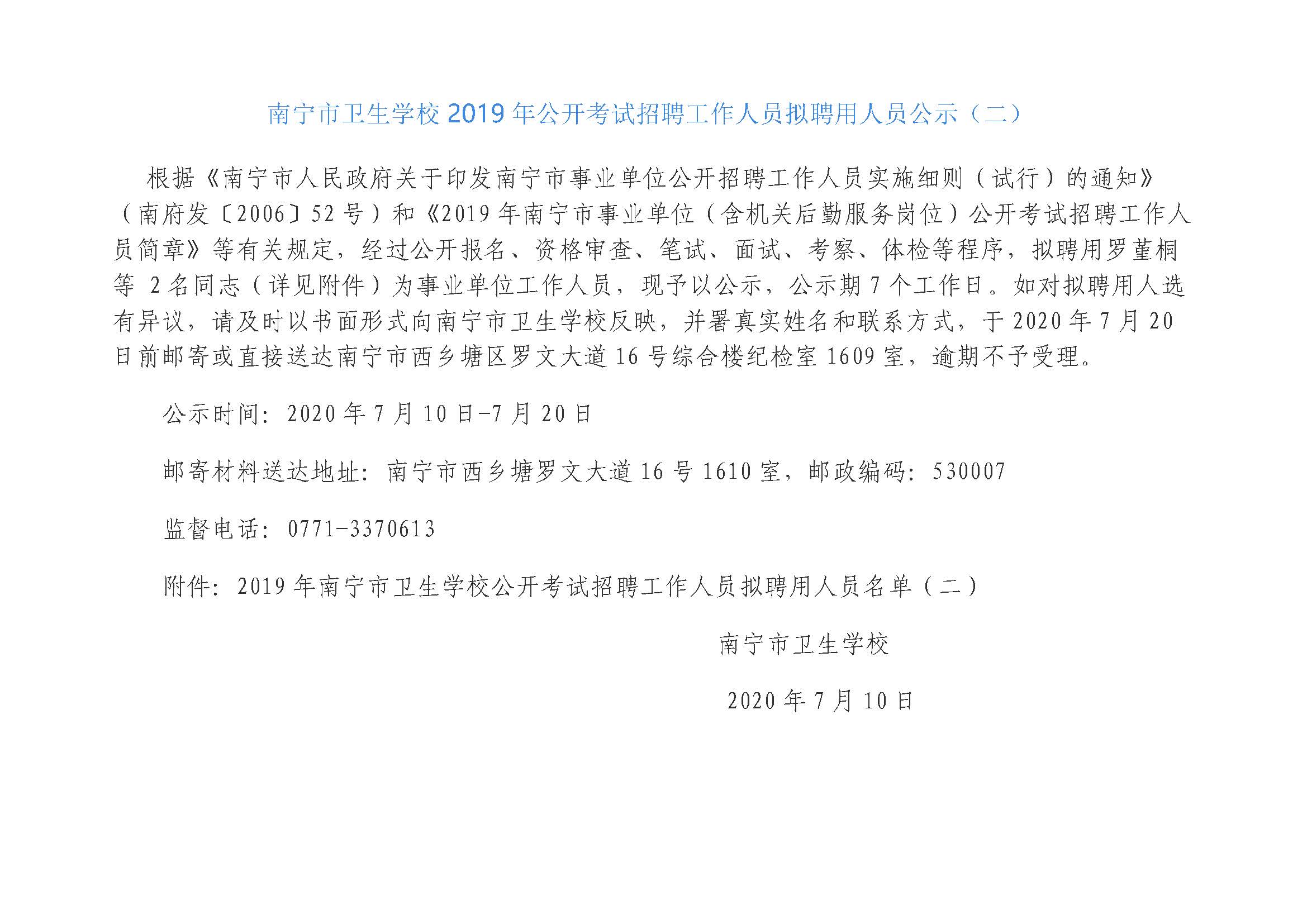 南宁市卫生学校2019年公开考试招聘工作人员拟聘用人员公示(二)