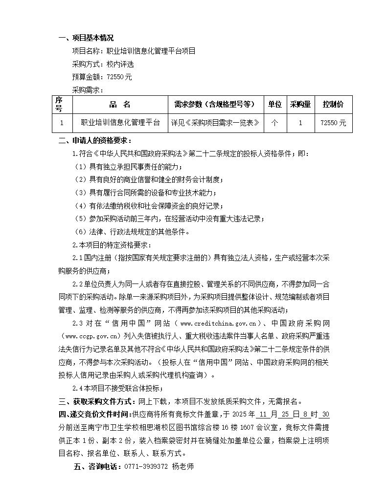 附件:南宁市卫生学校职业培训信息化管理平台项目采购文件.docx