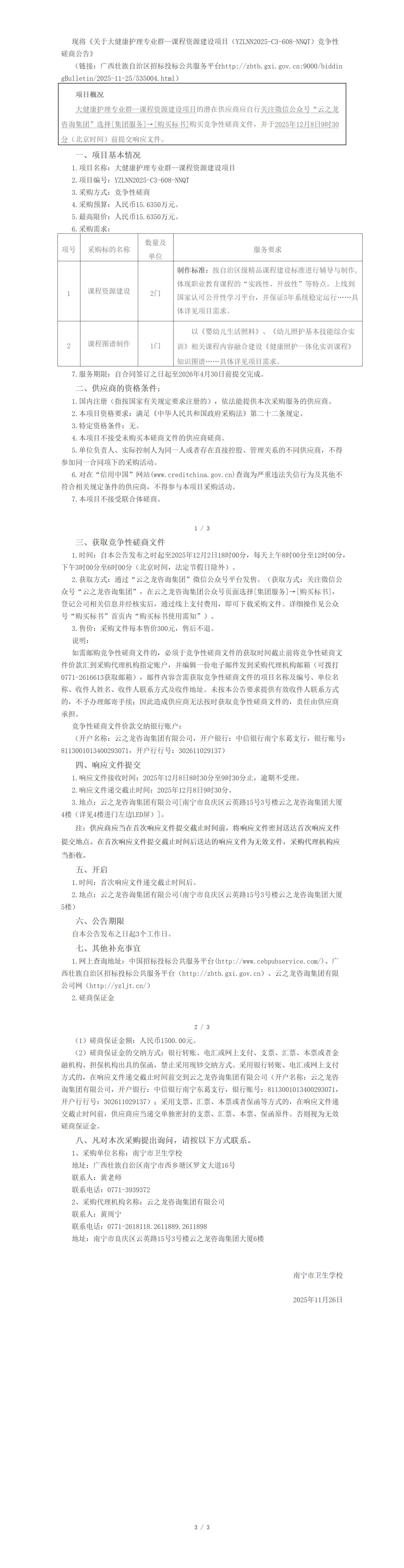 关于大健康护理专业群--课程资源建设项目 竞争性磋商公告