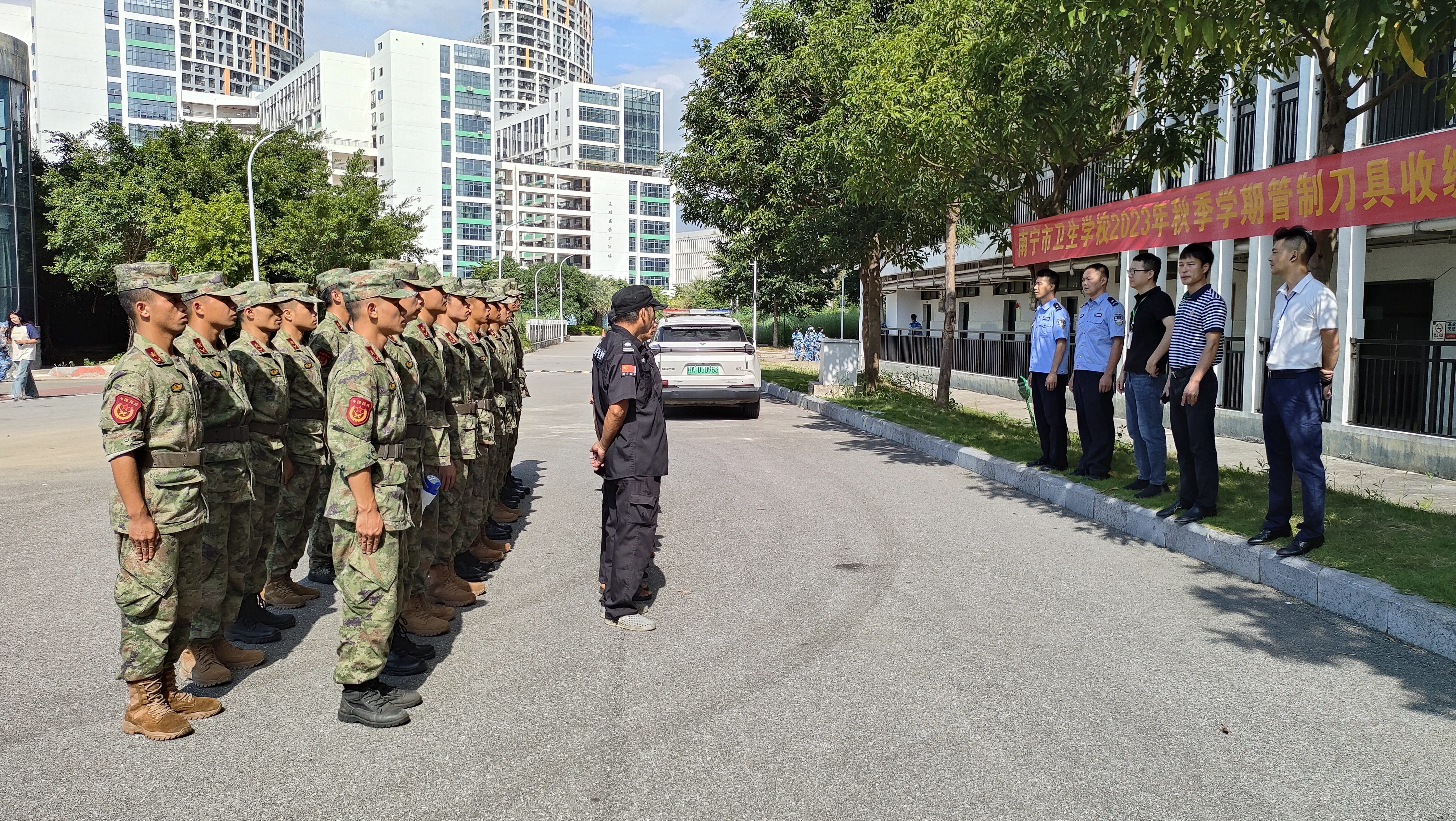 为强化学生安全意识,预防伤害事故发生,9月7日下午,南宁市卫生学校联合心圩派出所开展了2023年秋季学期管制刀具收缴专项行动。