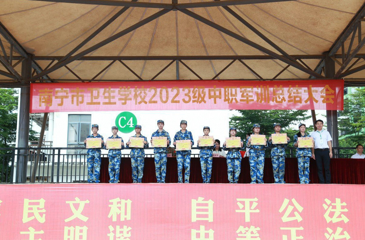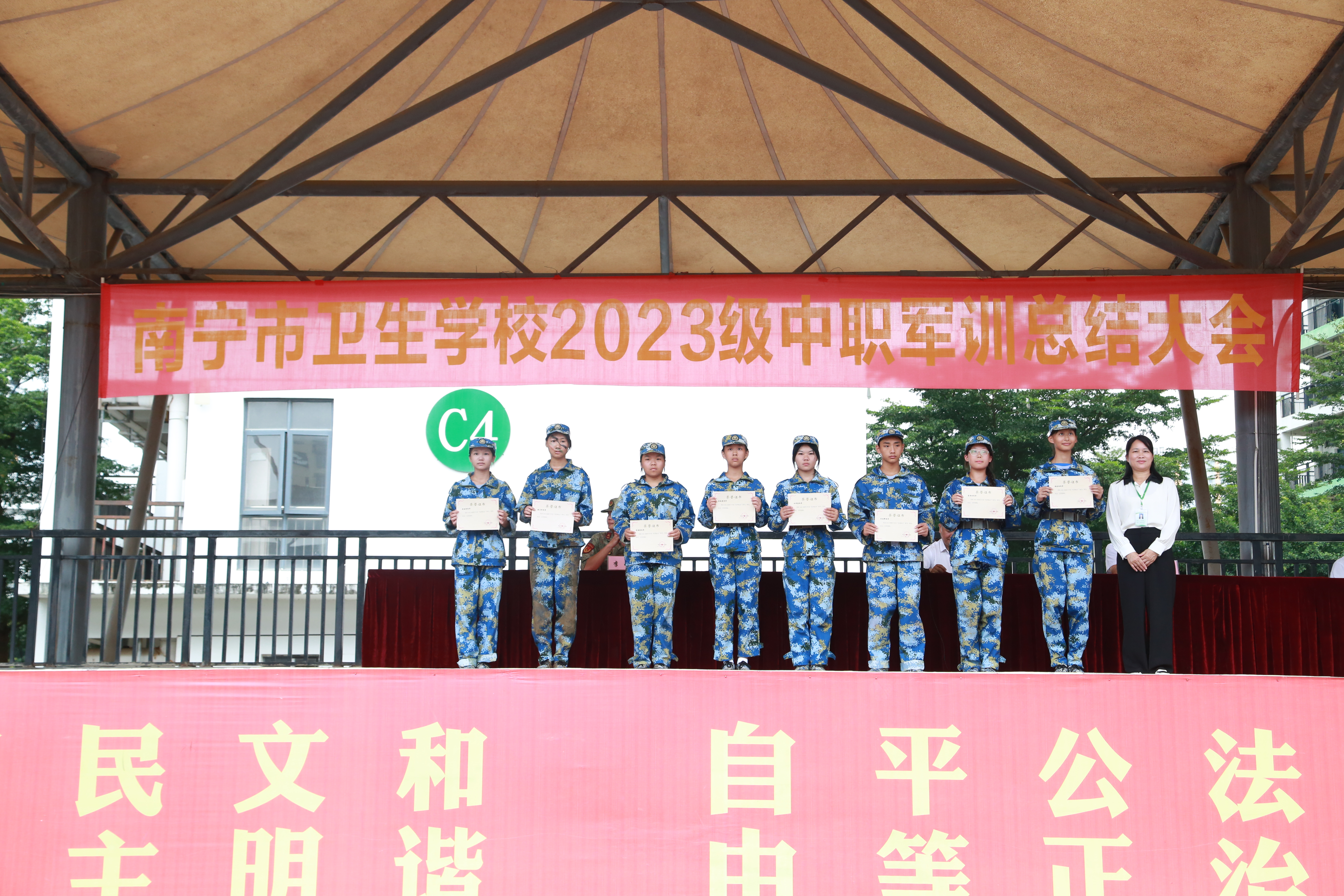 军训的生活一晃而过,9月10日上午8点,2023级中职新生军训汇报演出暨表彰大会如期举行。学校党委书记岑玉寒、副校长梁恒、许茂松、韦金英参加活动。