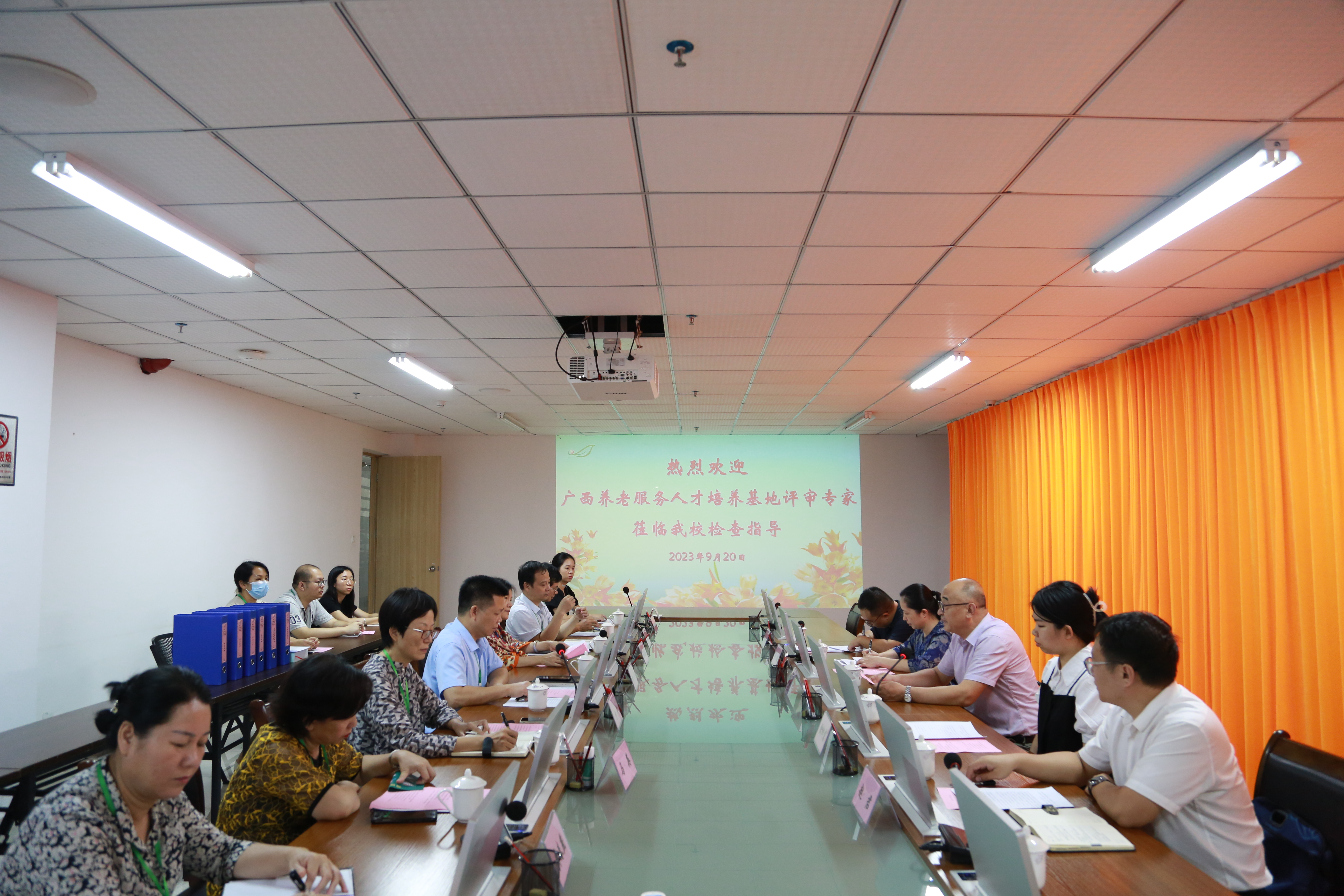 9月20日下午,广西养老服务人才培养培训基地评审专家林明、韦俊、陆洲霞、赵仲云、赵君一行5人莅临南宁市卫生学校开展广西养老服务人才培养培训基地现场评审工作。学校校长曾伟,学校党委副书记、纪委书记陈运英,副校长方莉,教务科科长韦振飞,招生就业办(培训中心)负责人石肖斌,相关教研室主任及招生就业办(培训中心)工作人员参加会议。