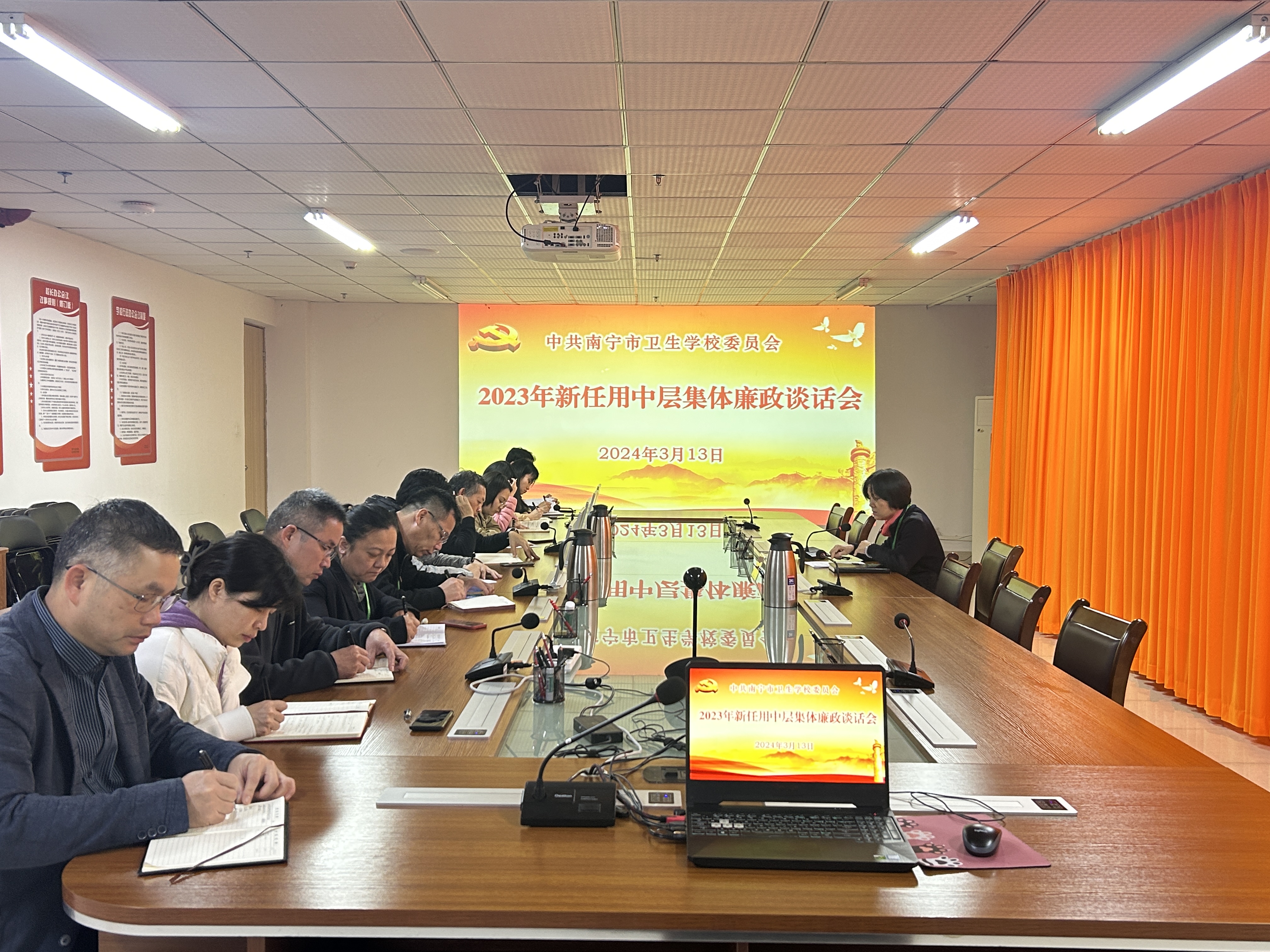 为进一步推进和落实党风廉政建设,提高领导干部廉洁履职的意识。2024年3月13日下午,南宁市卫生学校党委副书记、纪委书记陈运英对新任用的中层干部进行集体廉政谈话,筑牢廉洁履职的“防火墙”。
