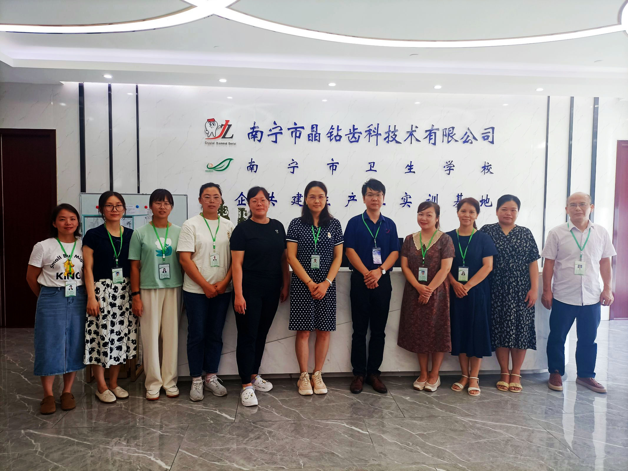 为了解2024届实习生对口实习情况及校企合作需求,深化精品课程建设,助力文化课课改新发展,南宁市卫生学校文化课精品课程团队暨文化课教师企业实践团队一行14人于2024年7月16日赴南宁市晶钻齿科技术有限公司进行企业调研。