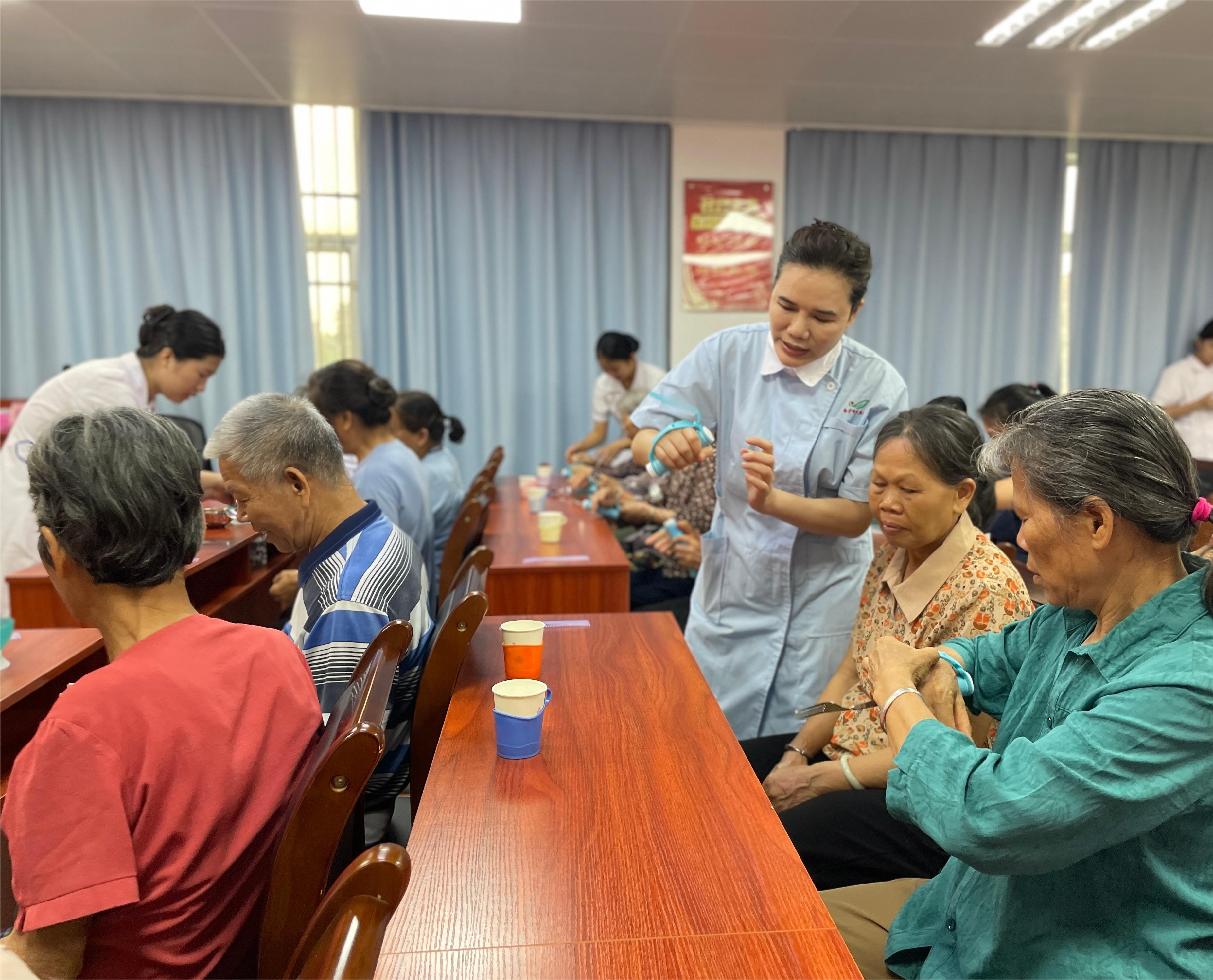 2024年7月以来,南宁市卫生学校专业教师团队先后进入南宁市西乡塘区、高新区内的10个社区,开展了10场特色培训。社区老年居民青睐“十巧手健康操”、“居家养老照护辅具使用”、“慢性病防治”、“中医养生保健”、“颈椎病调理”、“中药香囊制作”、“口腔保健”这些简单又实用的养生保健培训;家中有婴幼儿的居民则偏爱“婴幼儿抚触”、“气管食管异物急救”等婴幼儿照护类的培训。居民黄女士表示:“老师教我们的手法很简单,也容易上手,我回去也能自己给自己调理身体了。”健康技能进社区,居民培训笑颜开。