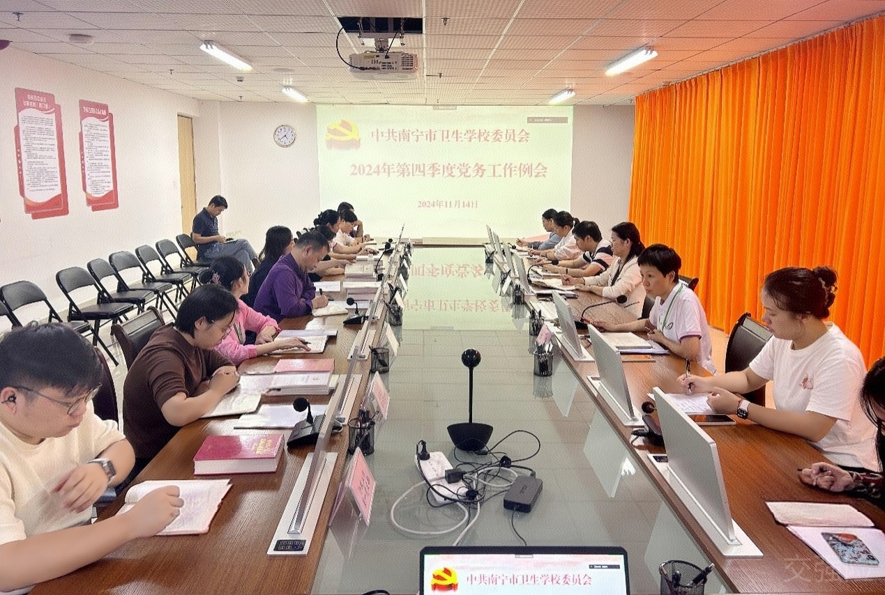 11月14日,为夯实学校基层党组织建设,强化党建品牌建设,南宁市卫生学校党委召开2024年第四季度党务工作例会。学校党委书记岑玉寒,学校党委副书记、纪委书记方莉,各党支部委员参加会议。