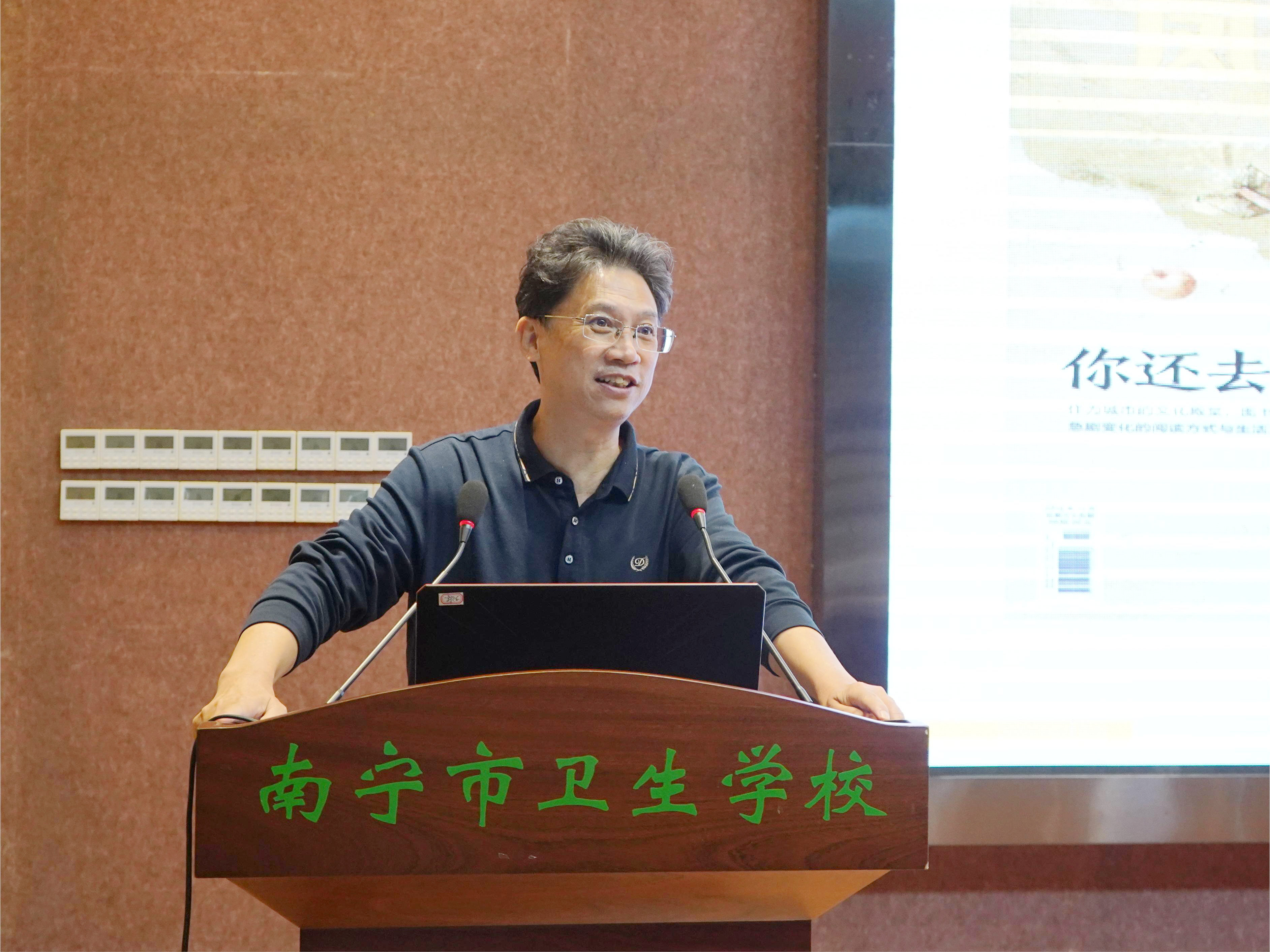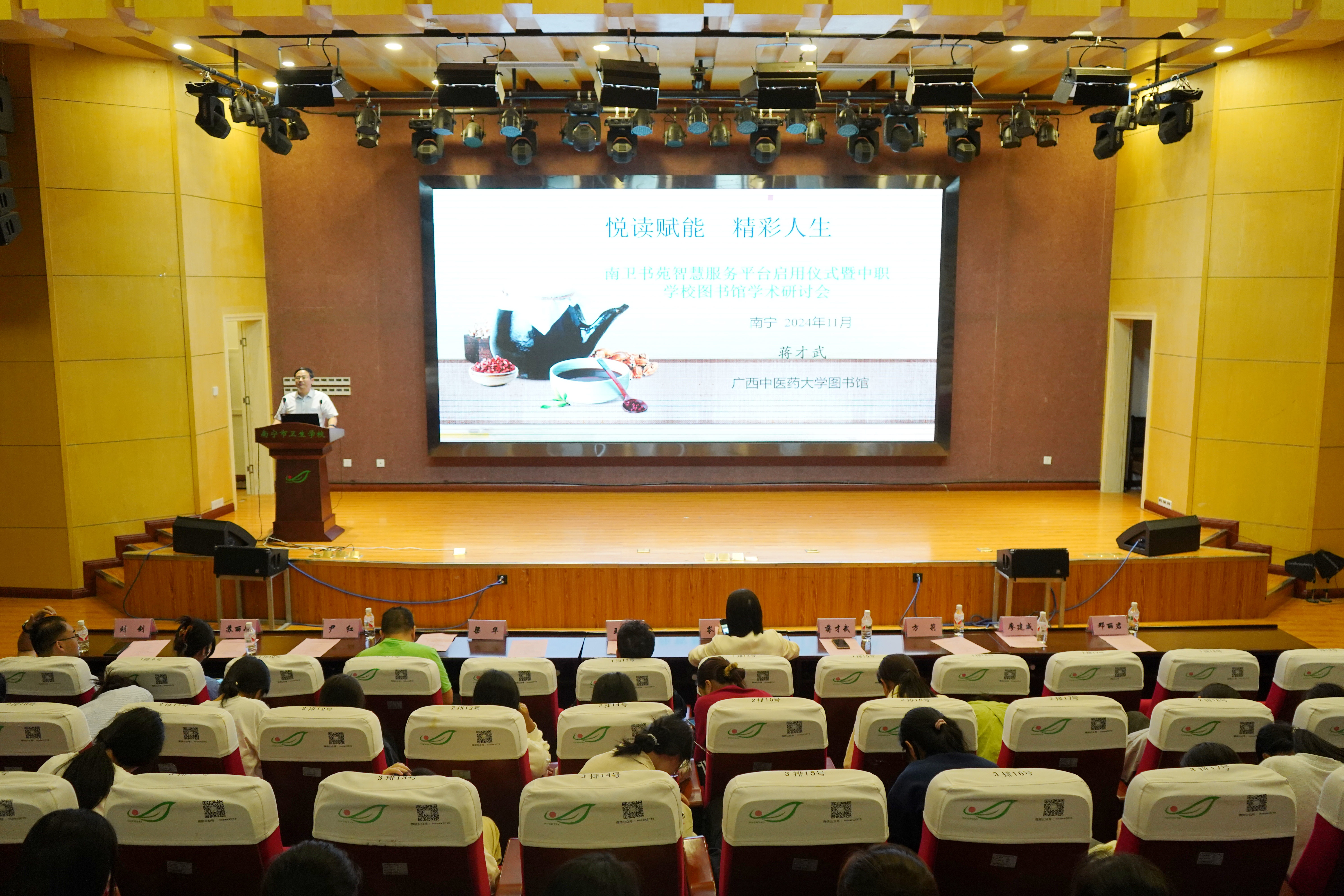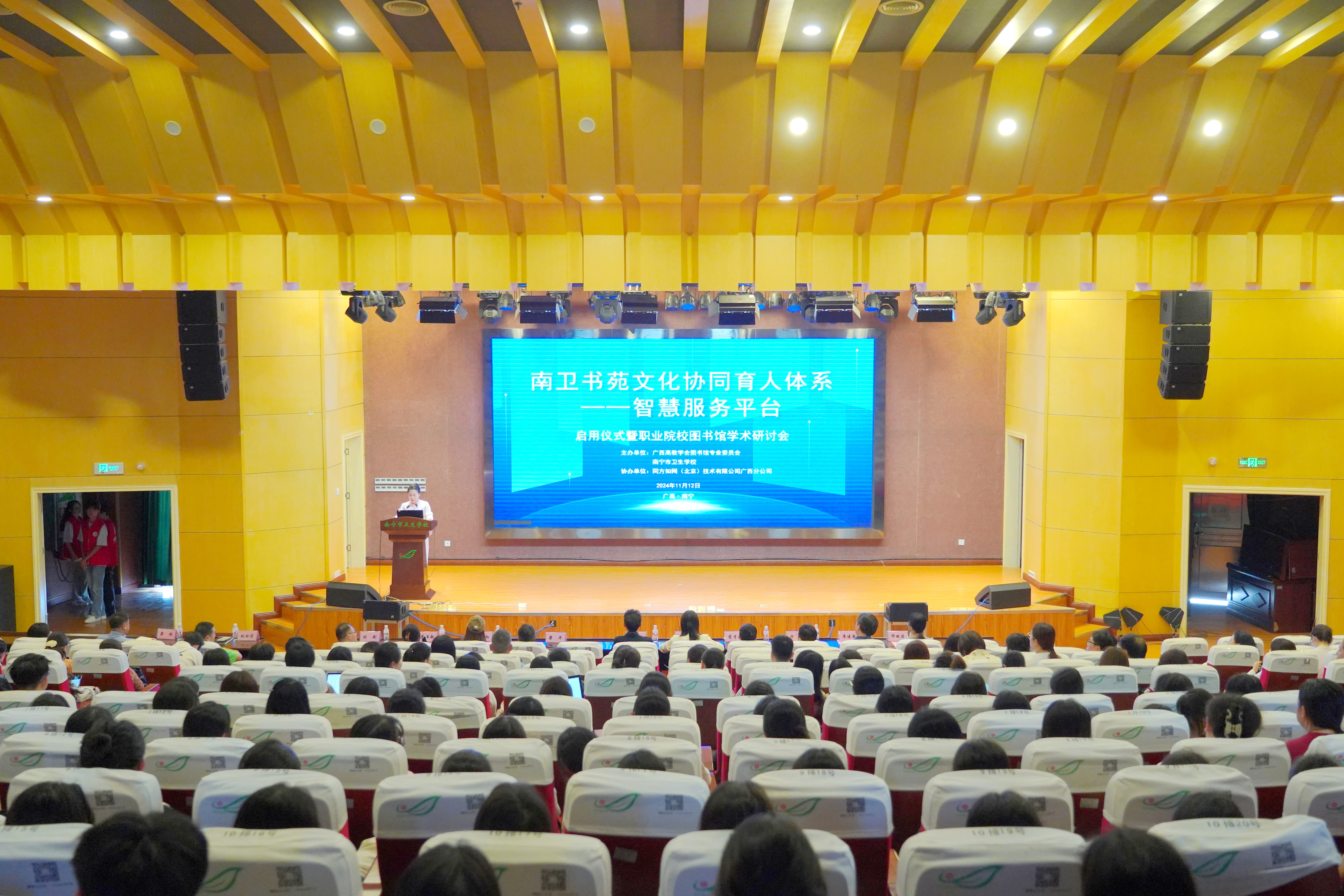 11月12日,由广西高教学会图工委和南宁市卫生学校共同主办的南卫书苑智慧服务平台启用仪式暨职业院校图书馆学术研讨会在南宁市卫生学校相思湖校区召开。南宁市卫生学校党委书记岑玉寒,广西高教学会图工委理事长、广西高校图书情报工作指导委员会主任、广西大学博士生导师、教授王承就,广西中医药大学图书馆二级教授、博士蒋才武,广西艺术学院图书馆馆长梁华、副馆长尹红,驻邕6家兄弟职业院校馆及中国知网南部区代表,南宁市卫生学校两校区全体教学人员、部分高中职学生等600多人参加了本次活动。活动由南宁市卫生学校副校长赵玲莉、广西艺术学院图书馆副馆长尹红共同主持。