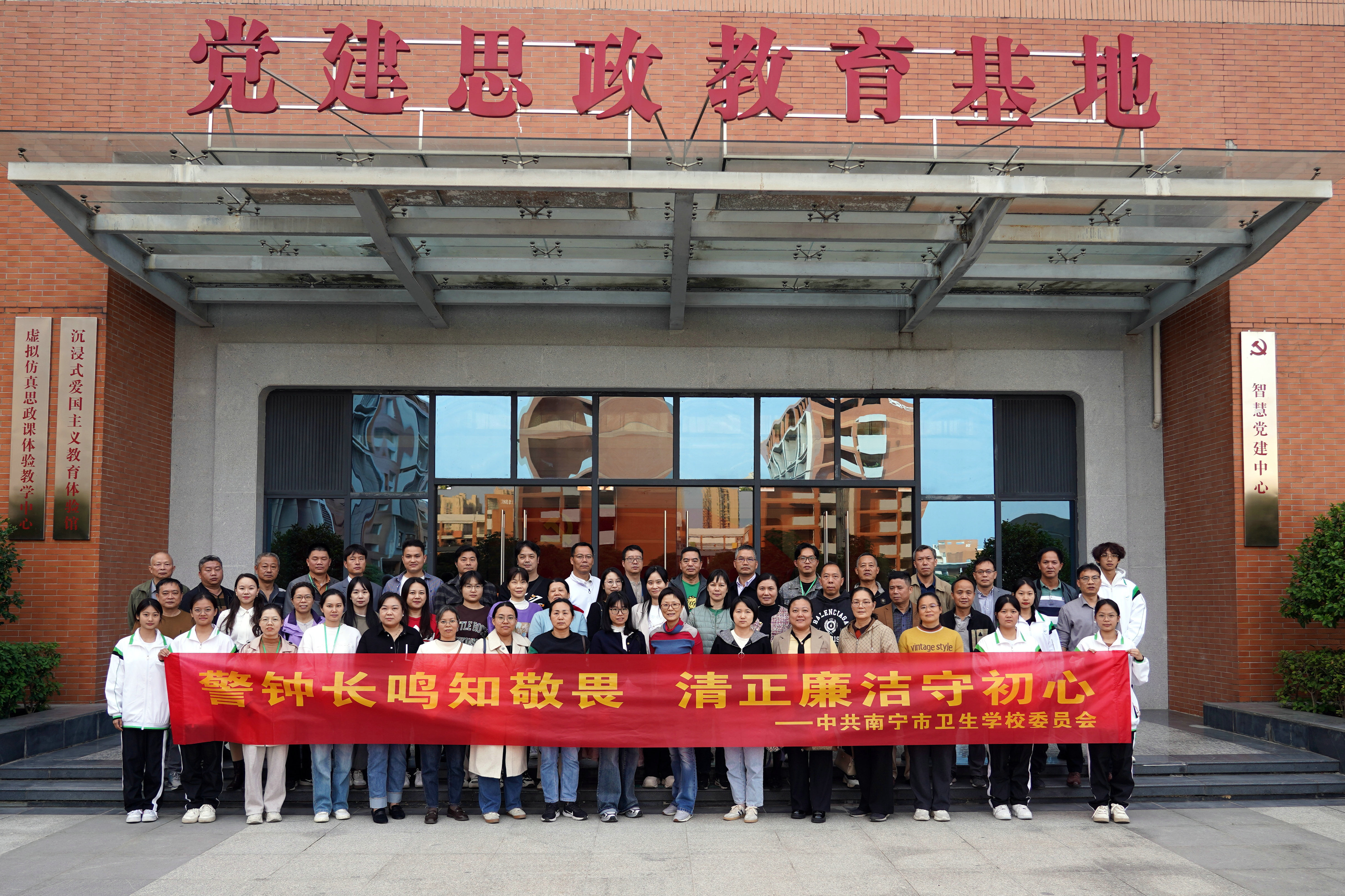为扎实推进群众身边不正之风和腐败问题集中整治工作和“清廉学校”建设,教育引导党员干部增强廉洁纪律意识、筑牢理想信念根基,11月26日下午, 南宁市卫生学校到广西建设职业技术学院廉洁教育基地开展“警钟长鸣知敬畏 清正廉洁守初心”党风廉政警示教育活动。学校党员领导干部、重点岗位人员及学生代表50多人参加活动。