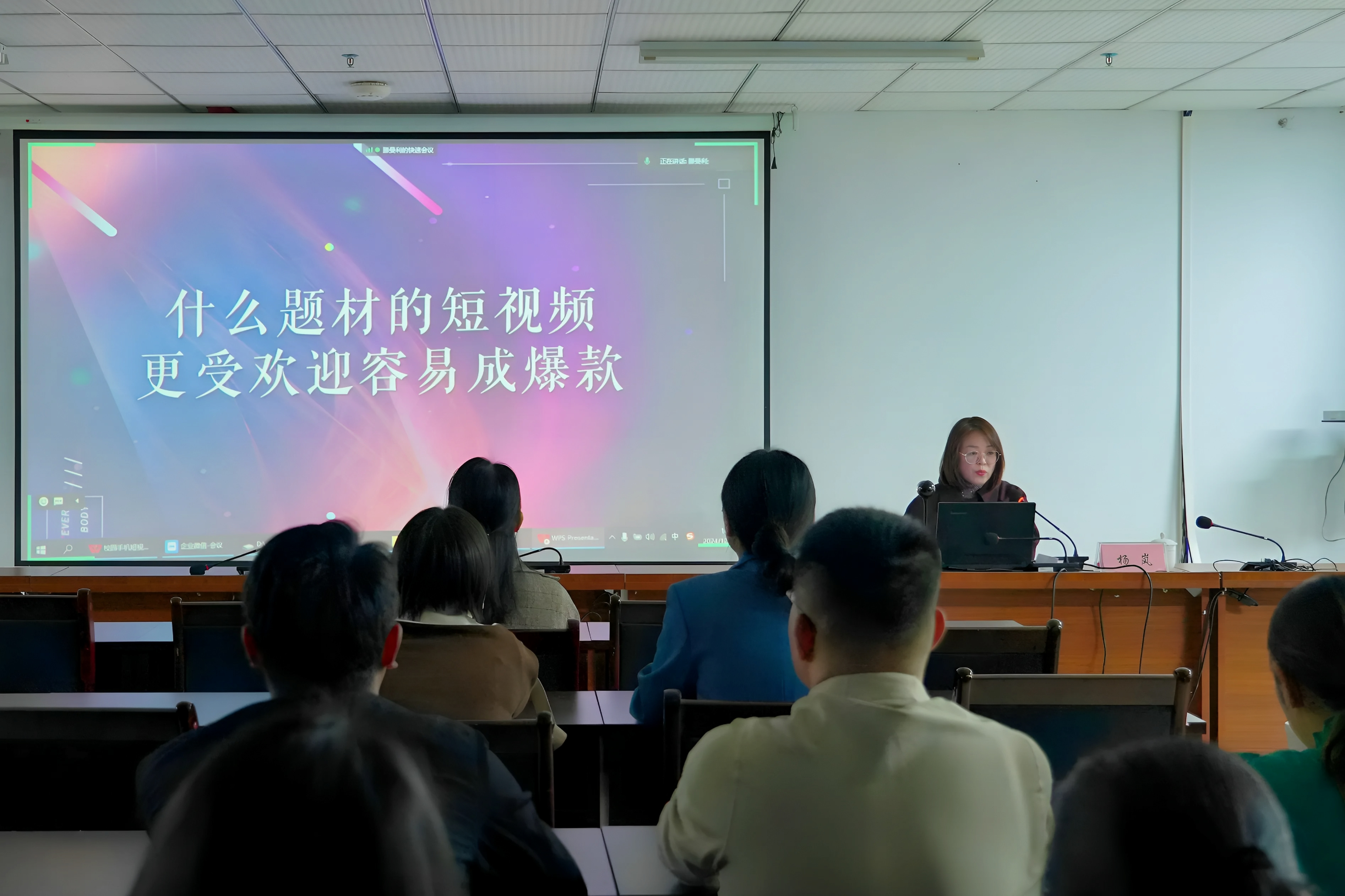 培训会上,杨岚以《校园爆款短视频的剪辑与制作》为主题,通过深入浅出的讲解、生动鲜活的案例分析以及耐心细致的操作演示,讲授了短视频采集、制作、发布的技巧,具有很强的针对性和指导性。学校通讯员们仔细聆听,认真做笔记,全身心投入到培训授课中。
