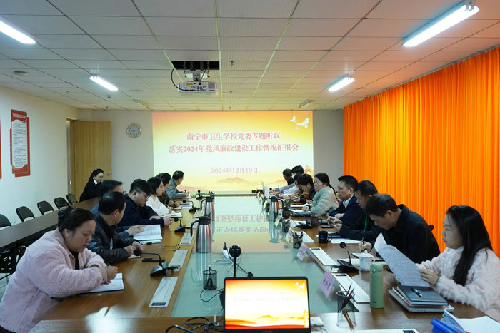 为进一步落实全面从严治党,扎实推进清廉学校建设,巩固学校党风廉政建设成果,12月19日上午,南宁市卫生学校召开党风廉政建设专题会议。会议听取了纪委关于落实2024年党风廉政建设和反腐败工作的情况汇报。学校党委书记岑玉寒主持会议并讲话,学校党委领导班子全体成员、重点科室(部门)负责人、各党支部书记参加会议。