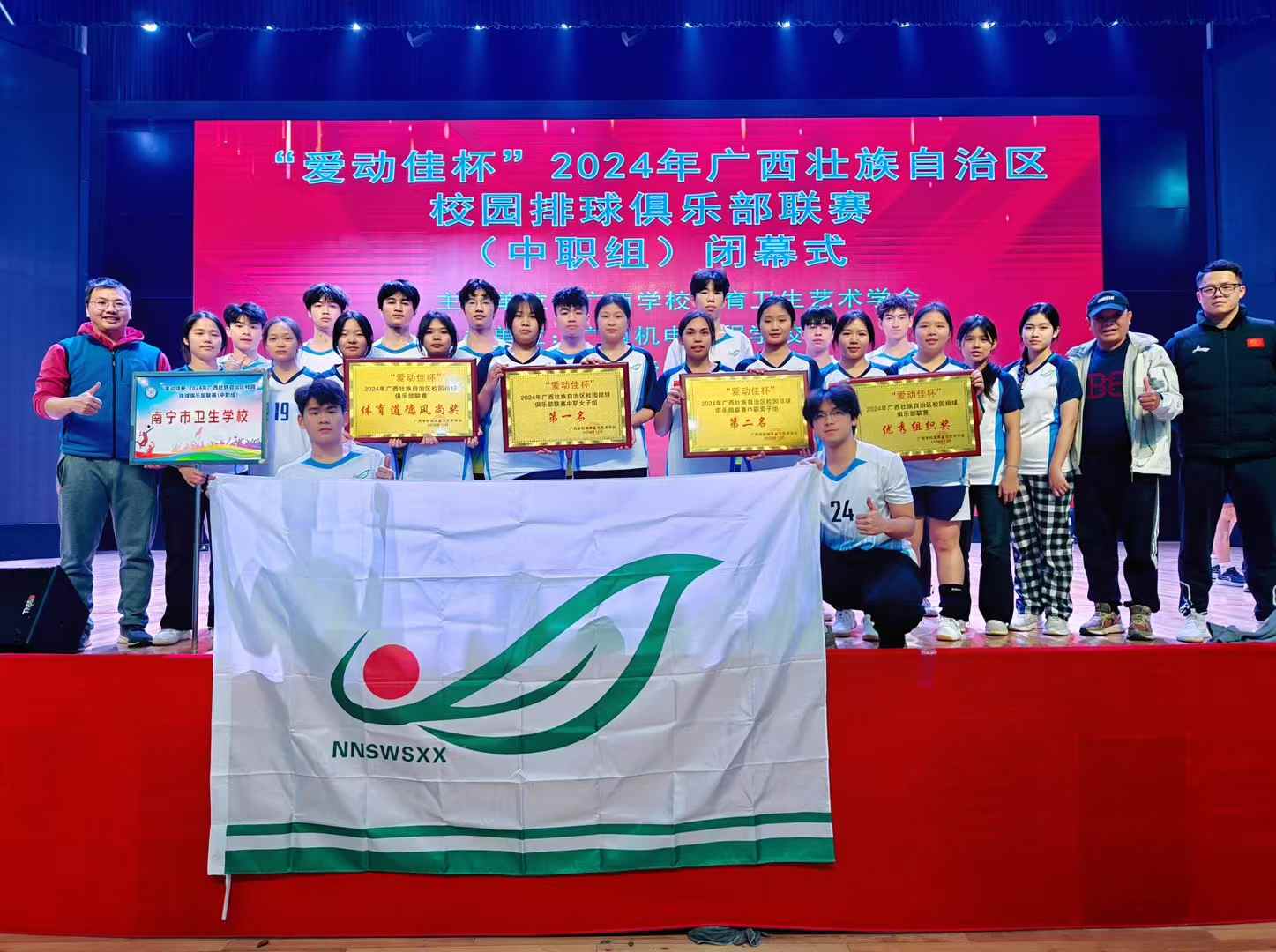 赛场上,学校的两支队伍以出色的表现展现了强大的实力。他们的进攻火力强劲,每一次扣球都如雷霆万钧,令对手防不胜防;防守时,灵活的身姿和敏捷的反应,将对手的进攻一一化解。经过多轮激烈的角逐,南宁市卫生学校女子排球队勇夺女子组第一名,男子排球队获得男子组第二名。同时,学校还荣获了体育道德风尚奖和最佳组织奖。这些成绩的取得,不仅是对学校体育教育成果的肯定,更是对学生们努力付出的认可。