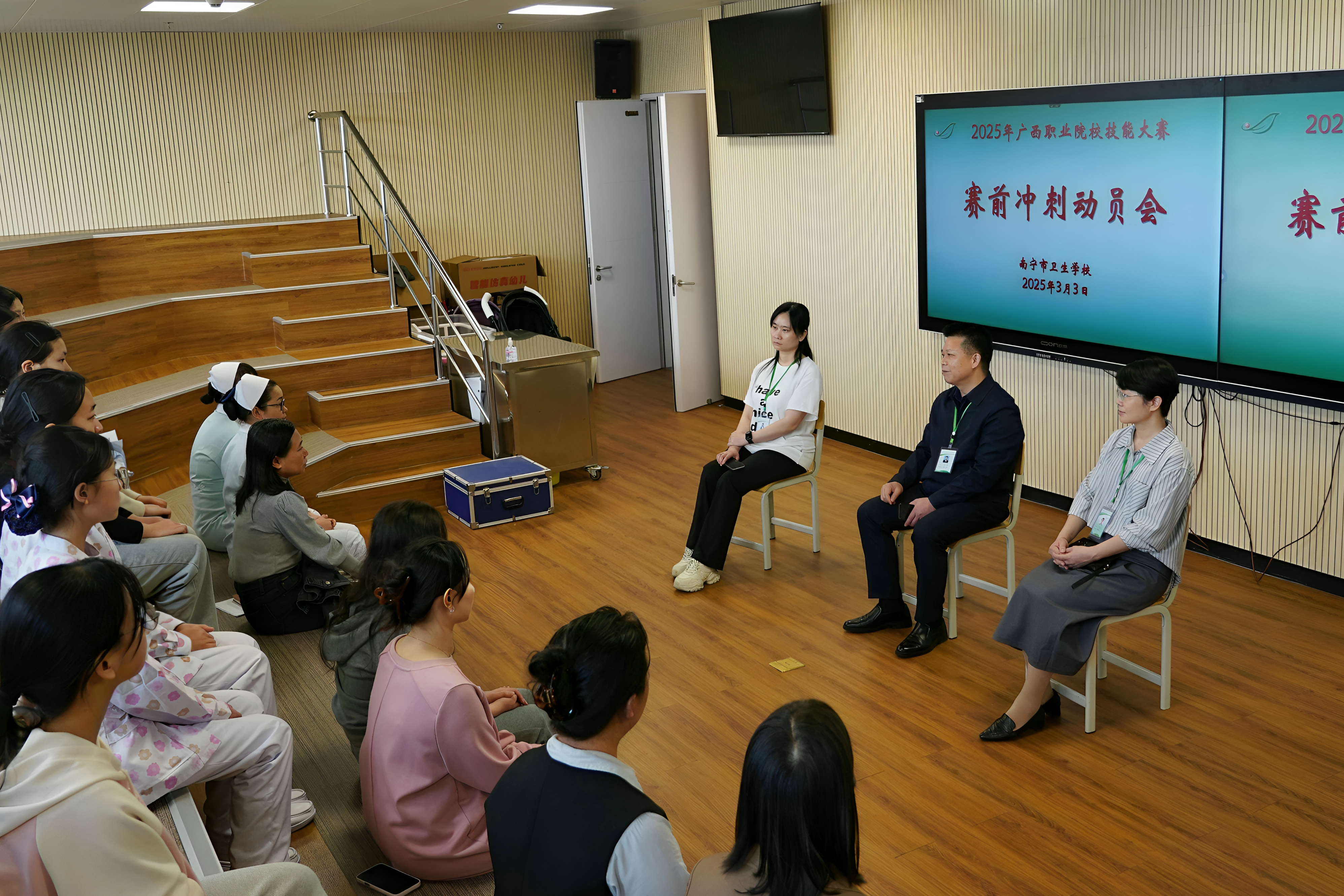 动员会上,学校党委副书记、校长曾伟对所有参赛师生表示了衷心的感谢和崇高的敬意,赞扬大家在寒假期间放弃休息,刻苦训练,展现出了南宁市卫生学校师生坚韧不拔、追求卓越的精神风貌。“技能大赛不仅是对我们专业技能的一次大考,更是对我们团队协作精神、心理素质和创新能力的一次全面检验。”曾伟校长的话语铿锵有力,他强调,大赛的舞台已经搭好,号角已经吹响,每一位参赛选手都是学校荣誉的使者,大家要坚定信心,迎难而上,以最佳状态迎接大赛的到来。