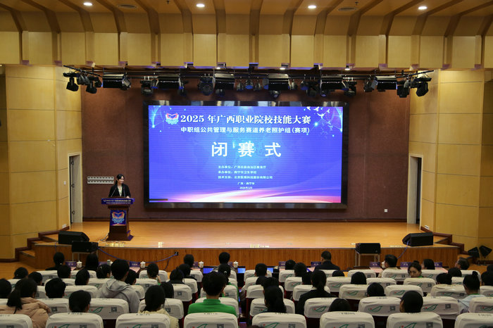 同台竞技展风采,笃志力行蕴匠心。3月7日上午,2025年广西职业院校技能大赛中职组公共管理与服务赛道养老照护组(赛项)闭赛式在南宁市卫生学校举行,学校副校长卢青、各参赛队领导、指导老师及选手参加闭幕式。闭赛式由教务科副科长刘柳主持。