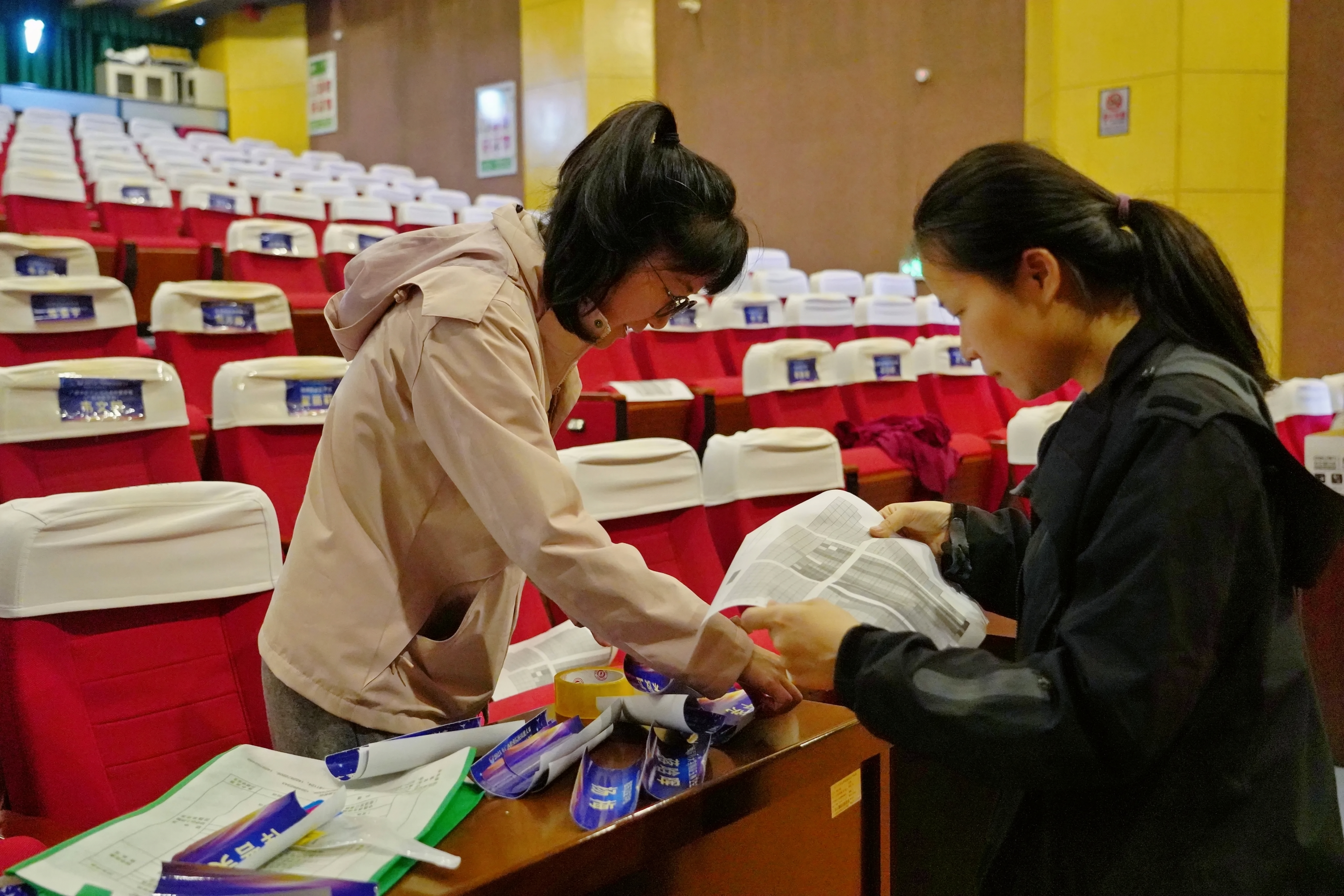 工作人员布置会场