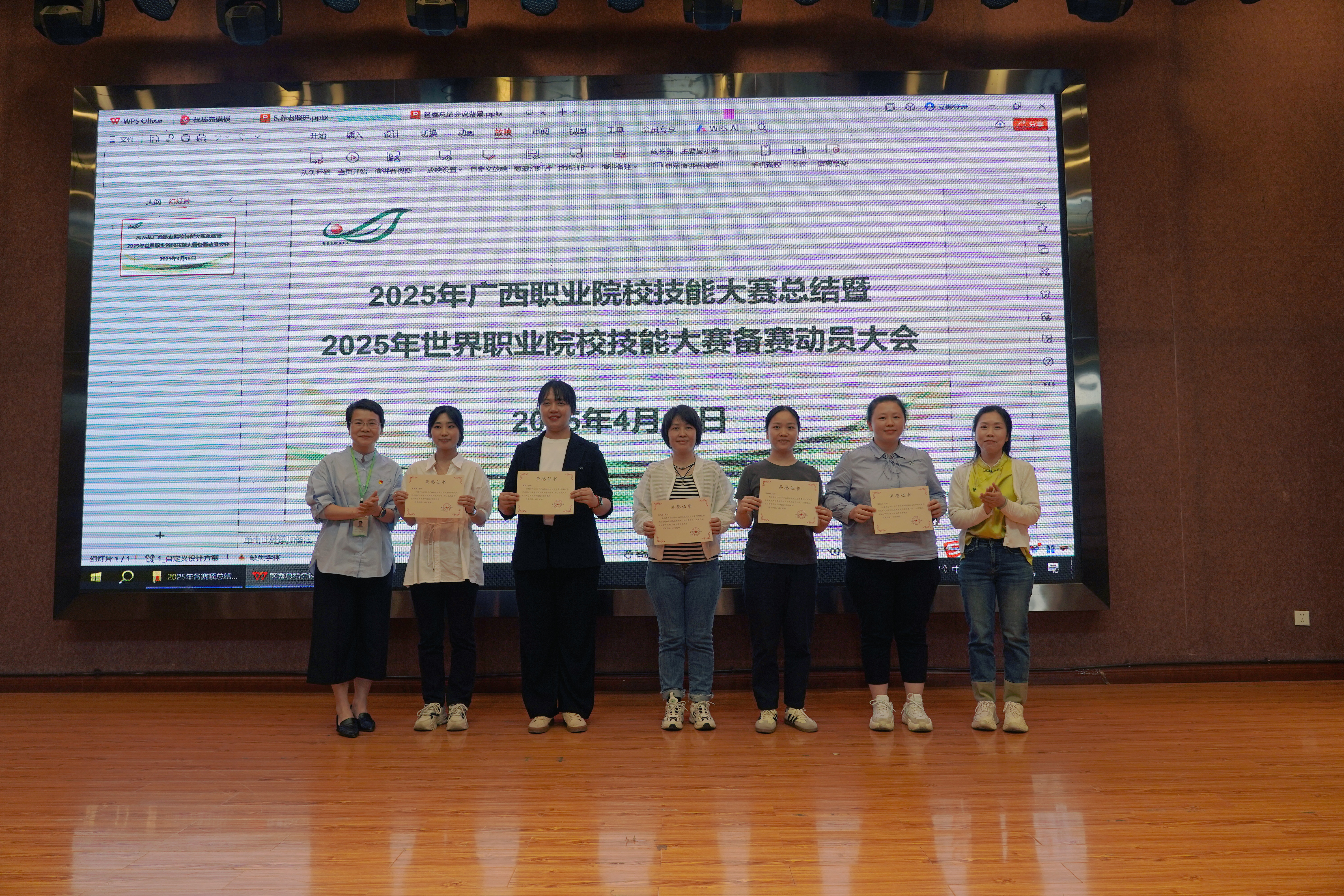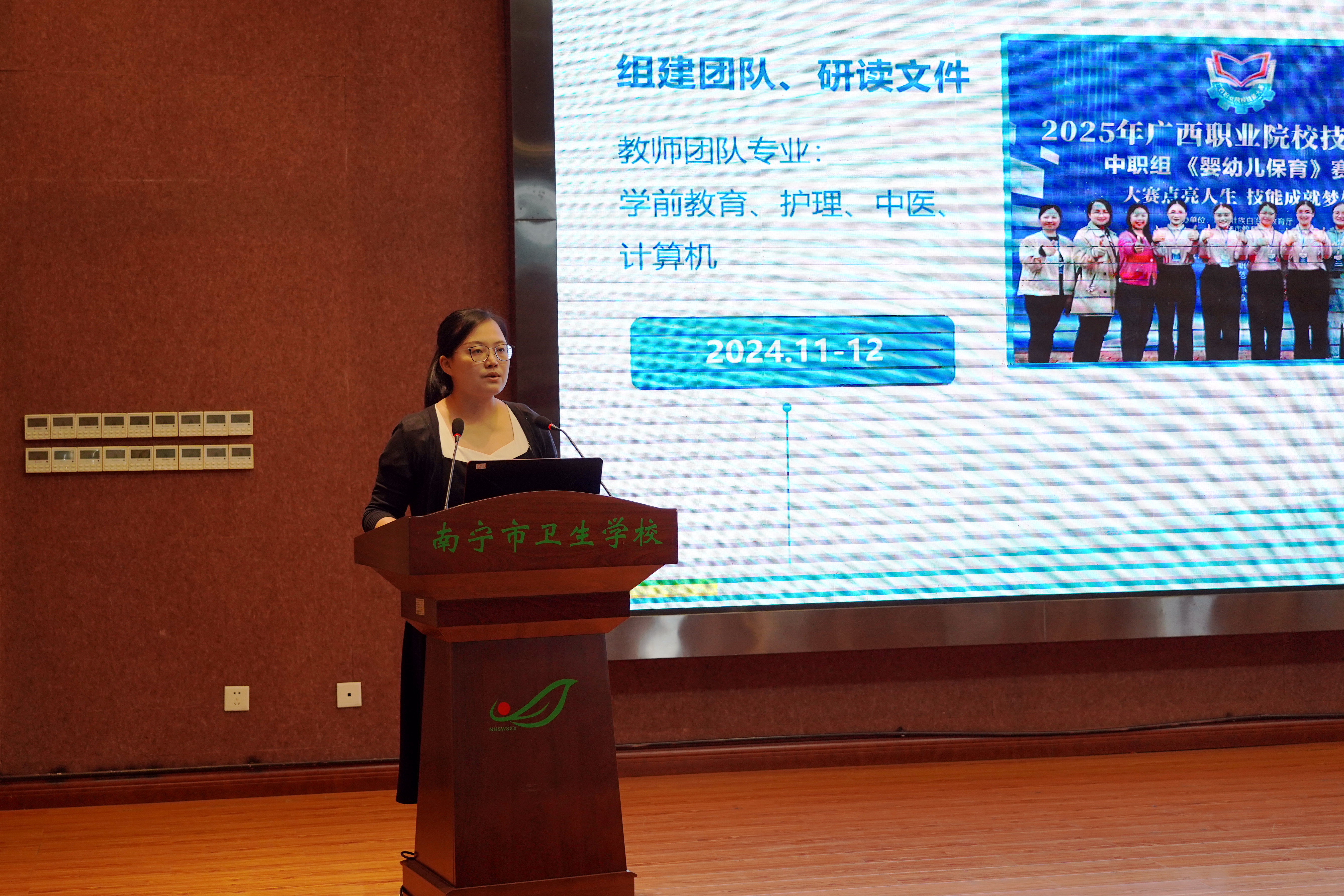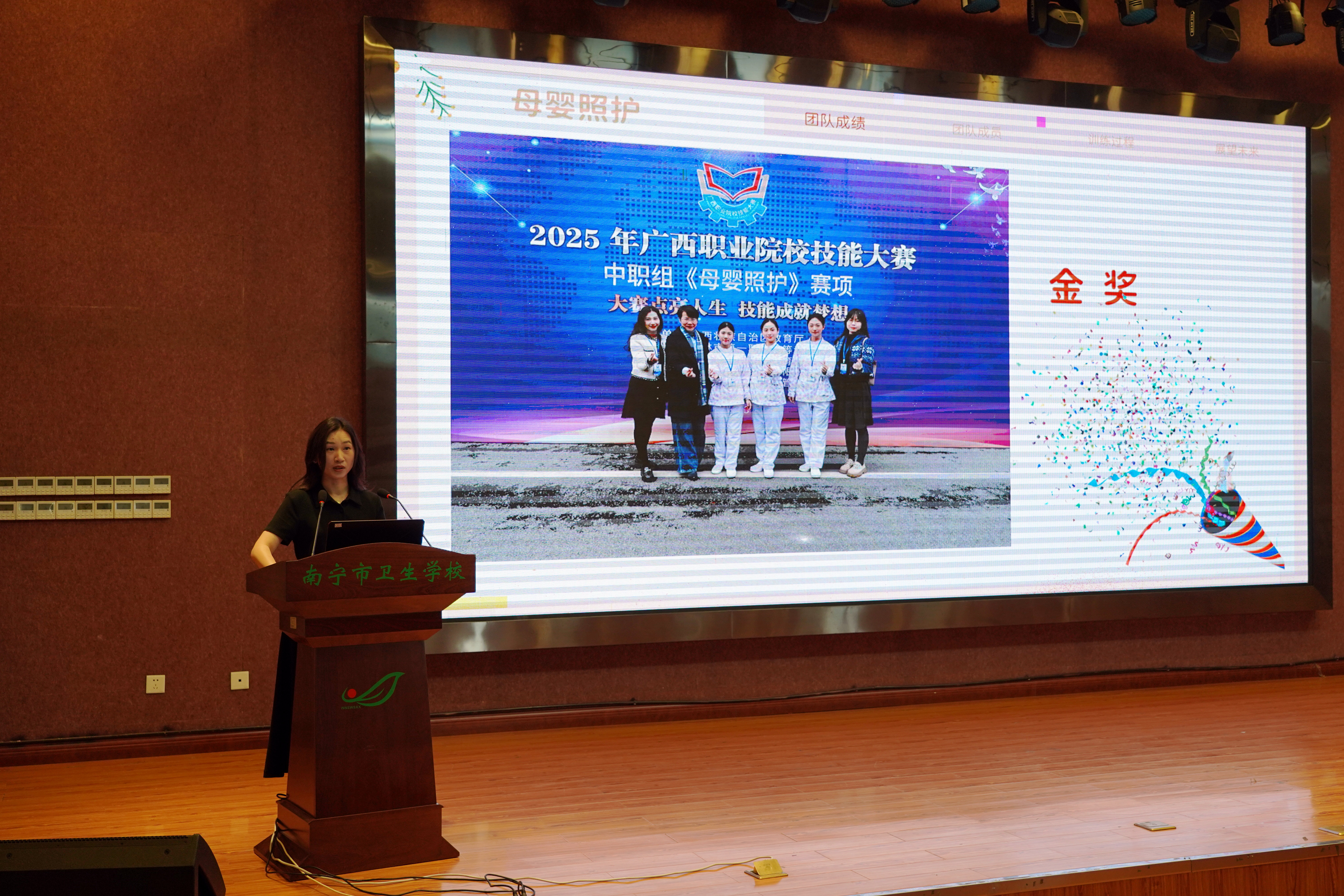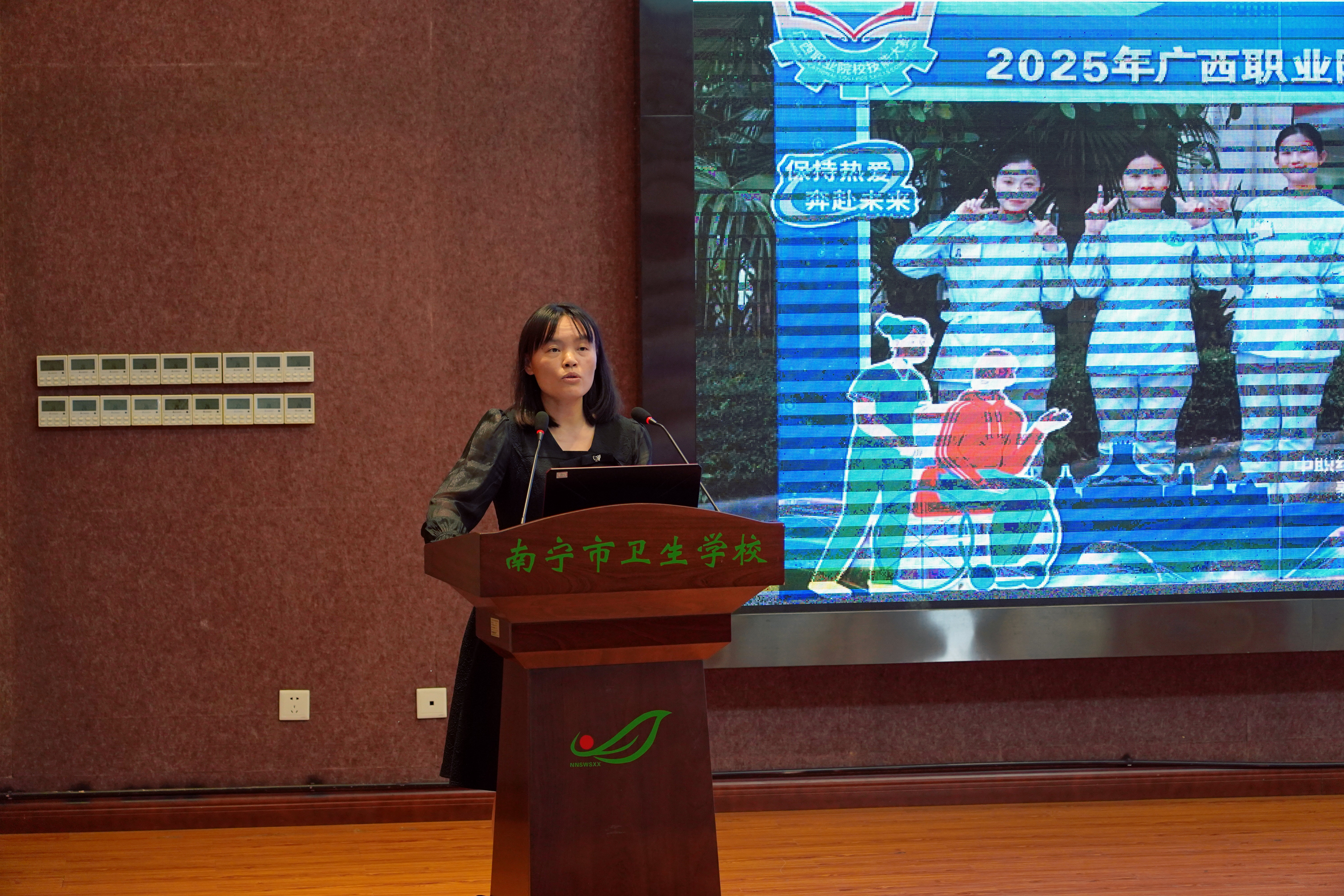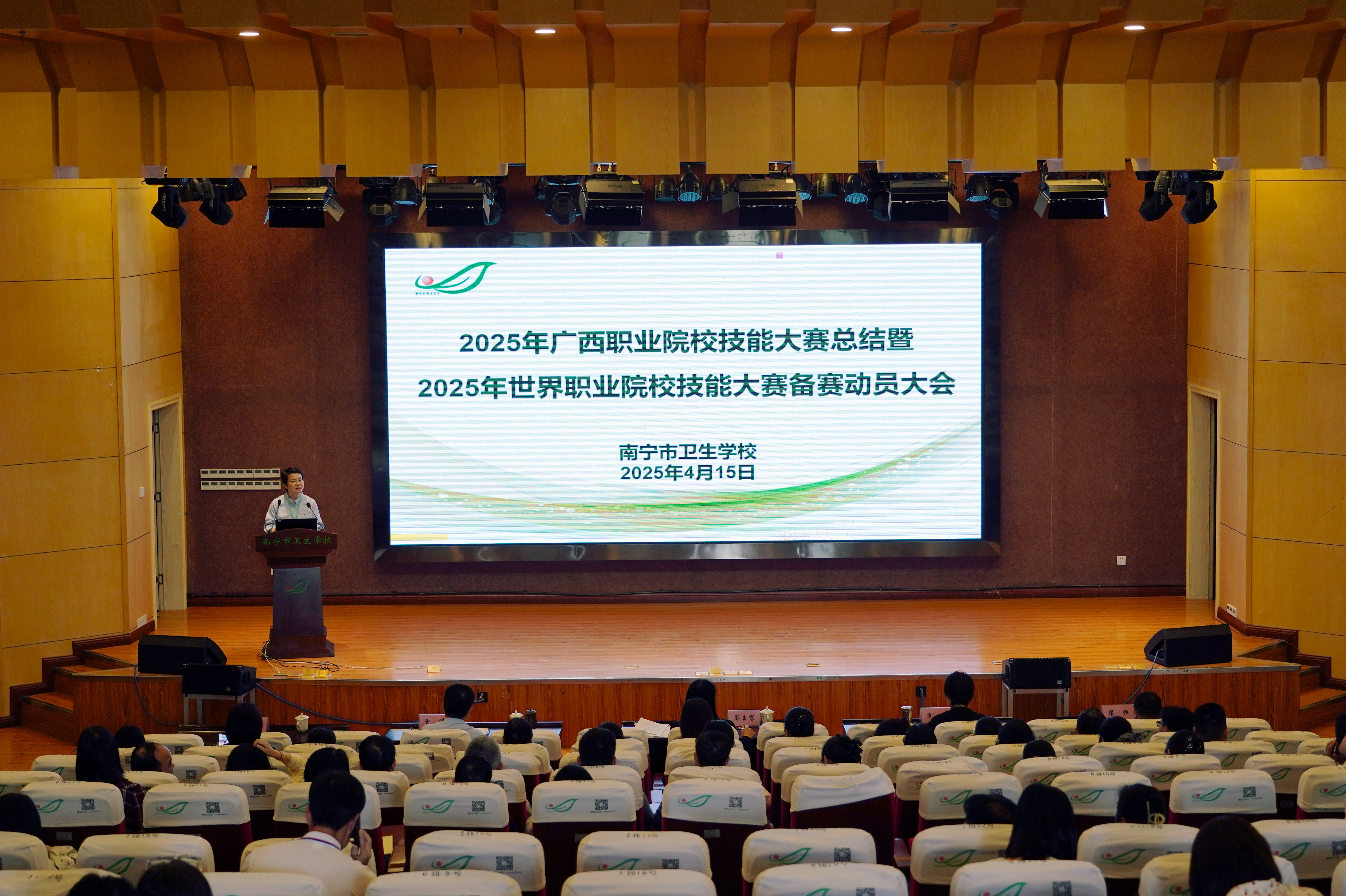 在职业教育蓬勃发展的当下,技能大赛宛如一座闪耀的灯塔,为莘莘学子照亮前行的道路。它是知识与实践碰撞的舞台,是勇气与智慧交织的战场,更是职业梦想扬帆起航的港湾。南宁市卫生学校积极投身其中,在 2025 年广西职业院校技能大赛中摘下2金2银2铜的好成绩。为鼓励先进、树立典型、总结经验、促进发展。4月15日,南宁市卫生学校召开2025年广西职业院校技能大赛总结暨2025年世界职业院校技能大赛备赛动员会。学校领导班子及全体教职员工参加会议,会议由学校副校长卢青主持。
